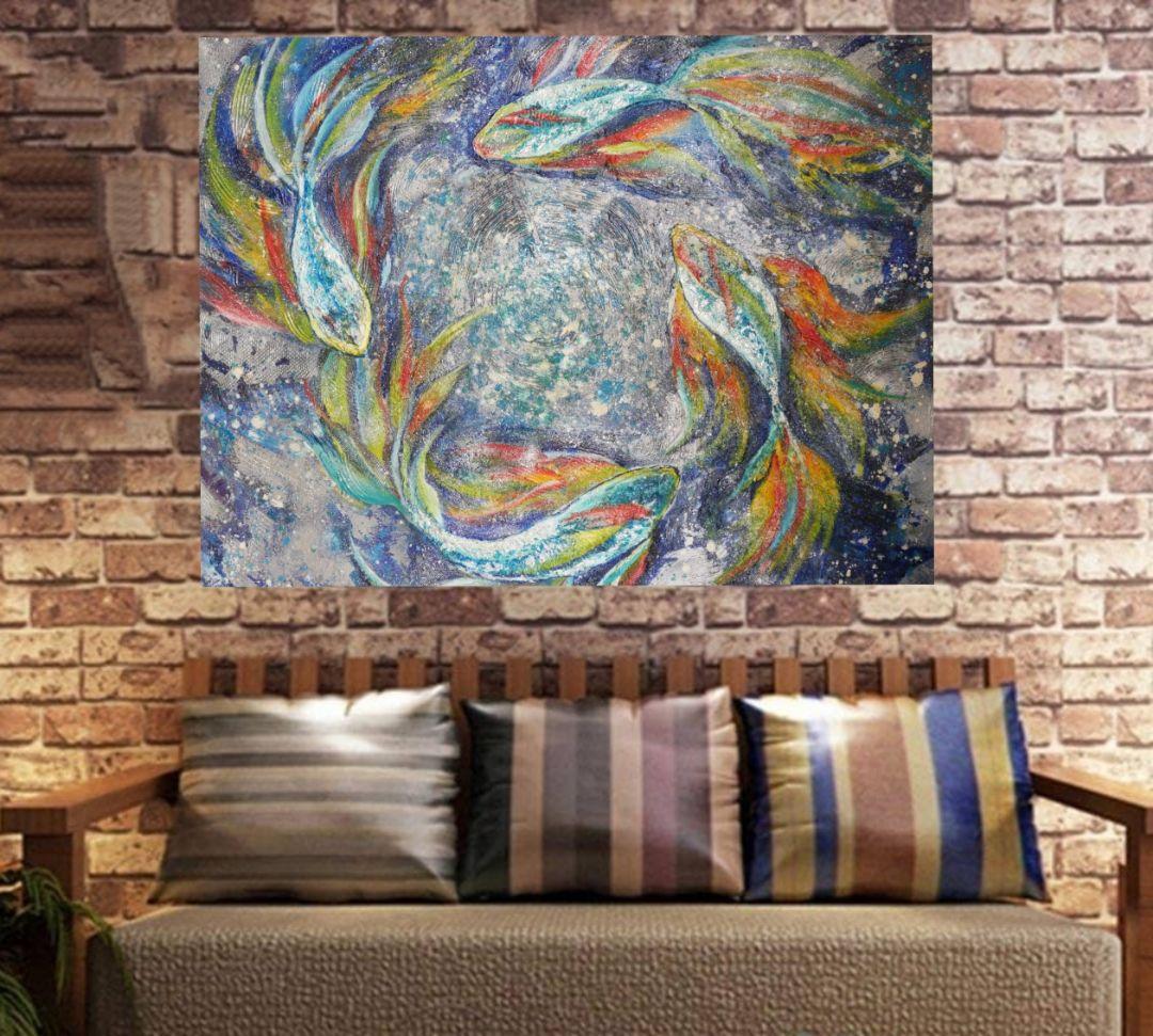 - 商品が届き、早速部屋に飾りました。大きな絵なので存在感があり、絵もとても綺麗なので、部屋の中が華やかになりました。とても気に入っています。